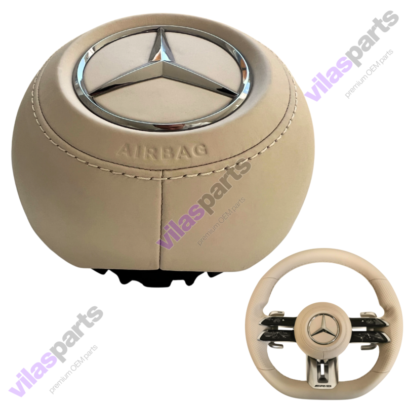 Mercedes-Benz AMG Beige Leather Airbag Steering Wheel W223 EQS EQE W465 W213.